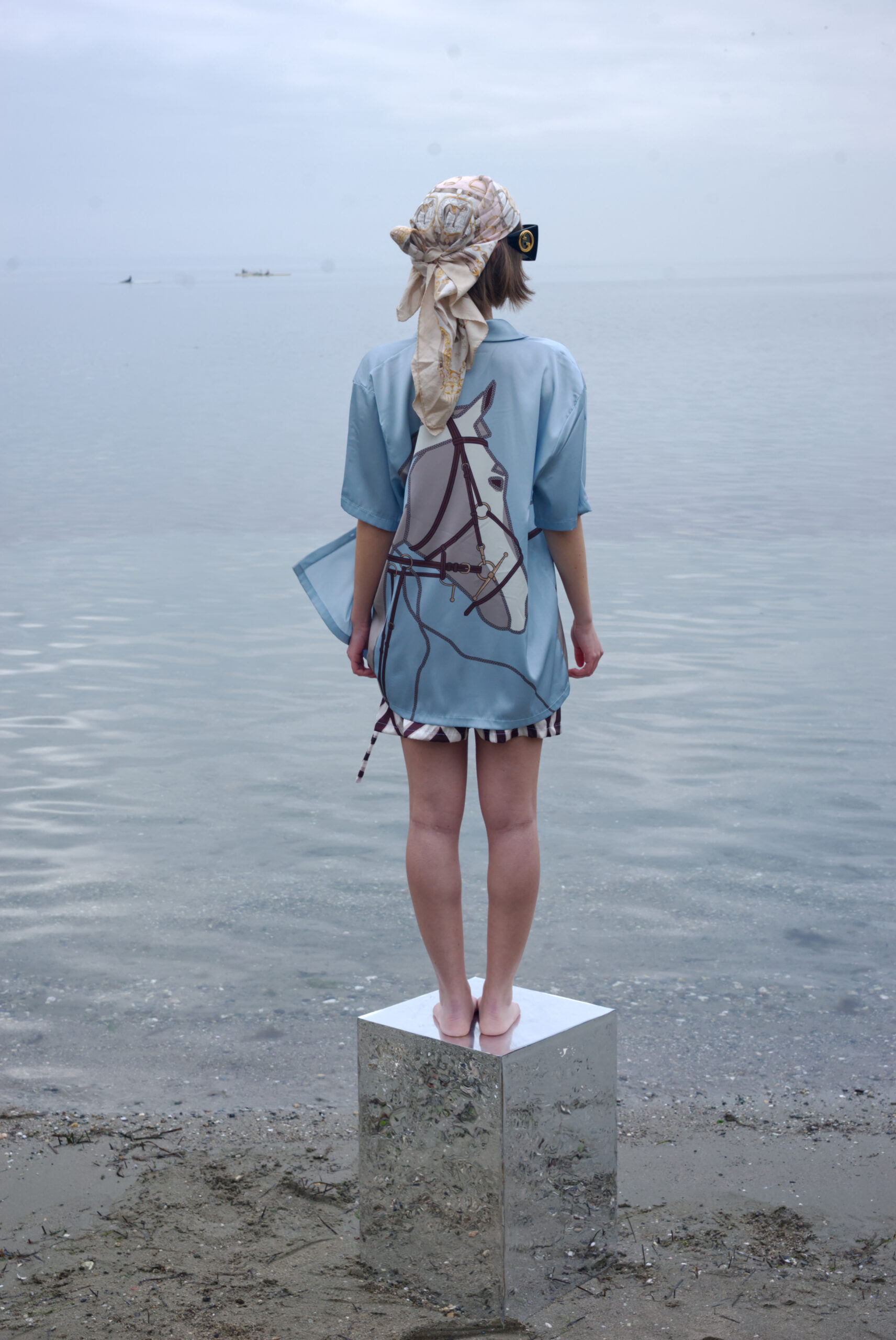 Πουκάμισο σατέν κοντομάνικο print horse .