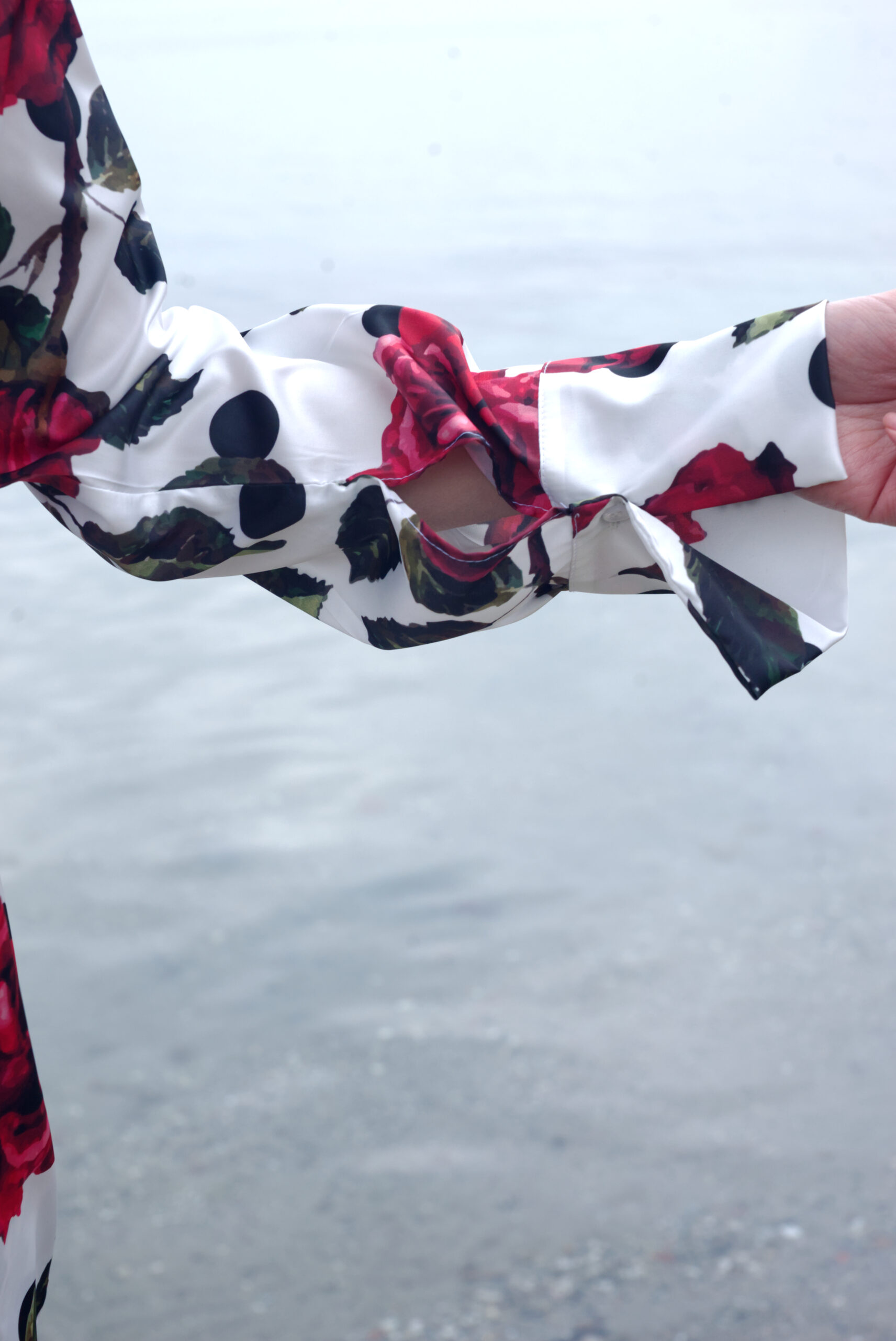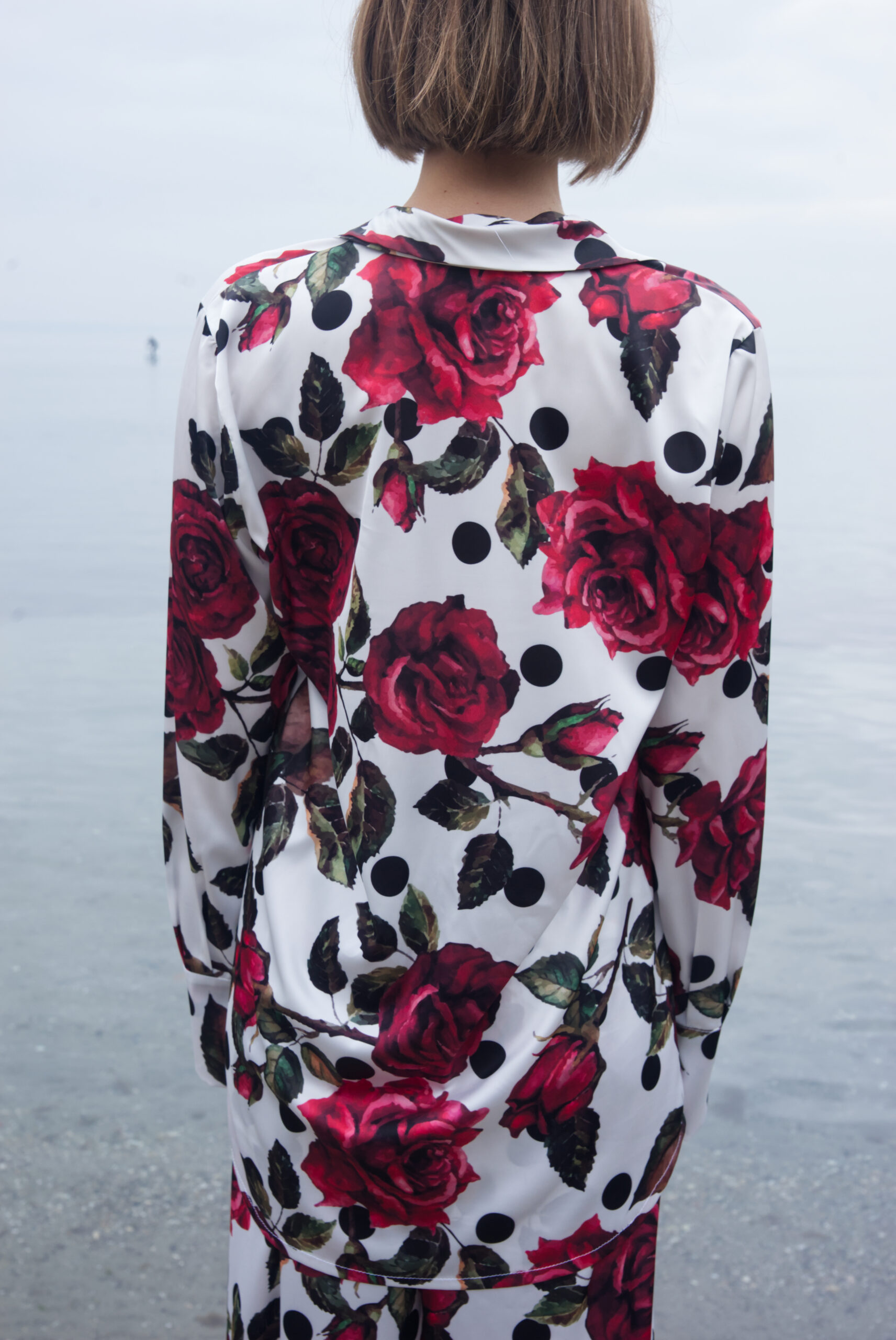 Πουκάμισο σατέν μακρυμάνικο print πουά floral .