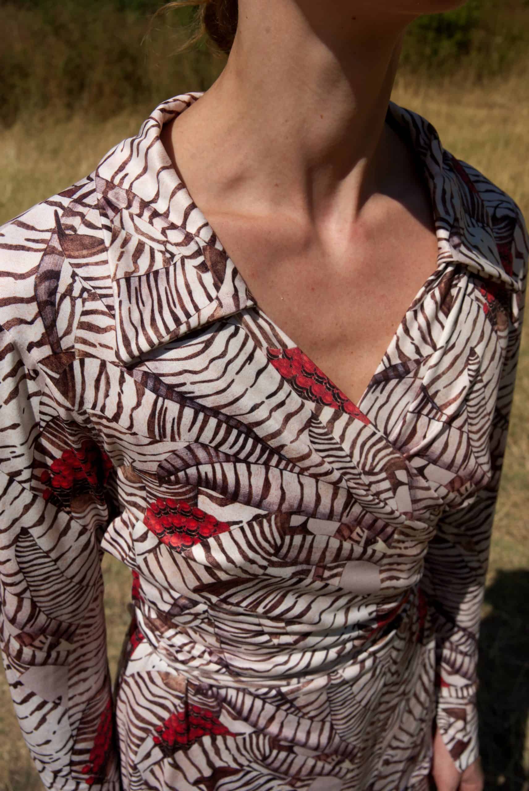 *Τα σχέδια των prints είναι all over και η διαδικασία κατασκευής slow fashion . Κάθε ρούχο είναι μοναδικό και έτσι σε κάθε ρούχο (από το ίδιο σχέδιο all over print) είναι βέβαιο πως οι φιγούρες βρίσκονται σε διαφορετικό σημείο του ρούχου .