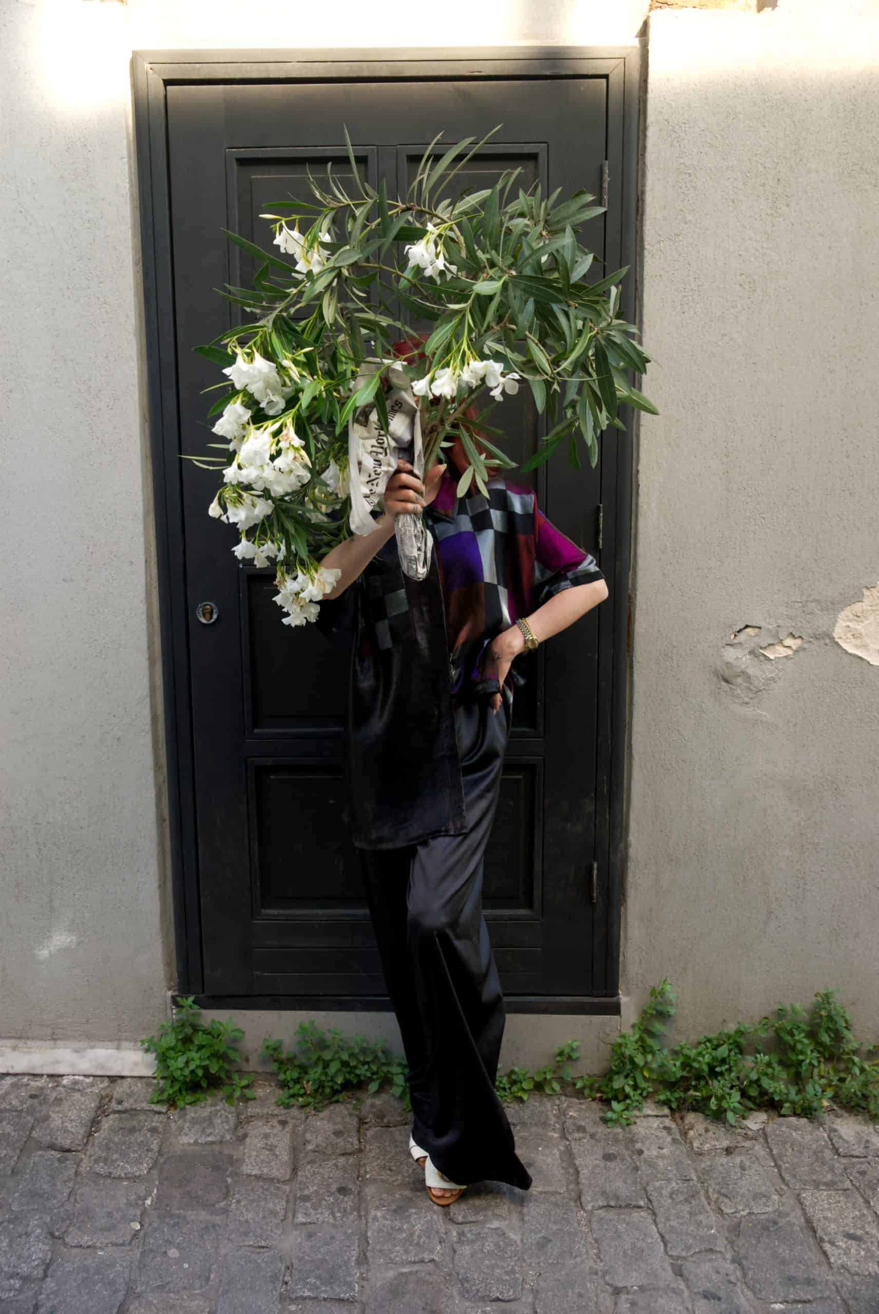 Πουκαμίσα σατέν print vintage/black . ποσότητα